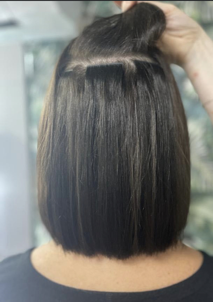 Tape extensions can offer length, thickness or both! They are tailored to suit your hair goals and are fully customisable to your length and colour. Perhaps you would like a few taps to even out the thickness of your hair or a full head to add body and/or length? Speak to one of our extension specialists to find out how to achieve your dream hair!